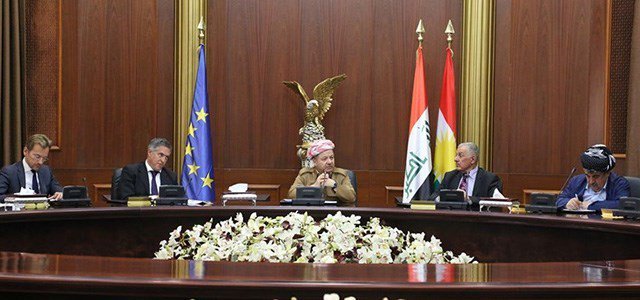 أكد وفد الإتحاد الأوروبي خلال إجتماعه مع رئيس إقليم كردستان مسعود البارزاني، ضرورة التعاون بين المكونات العراقية لدحر "الإرهاب" والإبتعاد عن القرارات الفردية وحل المشاكل العالقة، وفيما أشار البارزاني إلى "تهميش" المبادئ المتفق عليها في الدستور بالإعتماد على "عقلية الحاكم المركزي المتنفذ في بغداد".