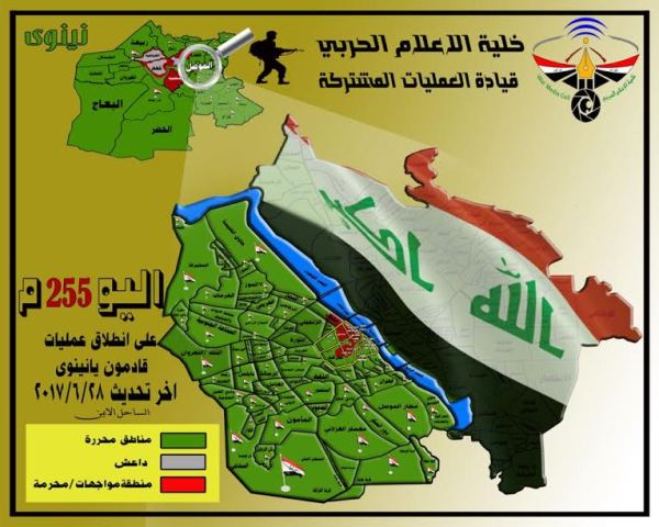 أكدت خلية الإعلام الحربي امس الأربعاء، تحرير٥٠٪ من الموصل القديمة، موضحة المساحة المتبقية والأحياء الواقعة ضمنها، فيما لفتت الى استمرار العمليات العسكرية لإعلان النصر الكامل.