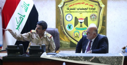 وذكر بيان مقتضب لمكتب العبادي " ان رئيس مجلس الوزراء القائد العام للقوات المسلحة زار قيادة العمليات المشتركة واجتمع بقياداتها كما اطلع على آخر مستجدات العمليات".