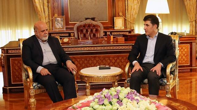 وقالت حكومة إقليم كردستان في بيان نشر على صفحتها الرسمية إن "رئيس حكومة إقليم كردستان نيجيرفان البارزاني استقبل السفير الإيراني ئيراج مسجدي"، مبيناً أن "الجانبين بحثا الأوضاع في المنطقة والحرب ضد داعش" الارهابي