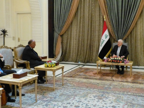 استقبل رئيس الجمهورية فؤاد معصوم، وزير الخارجية المصري، سامح شكري، الذي وصل العاصمة بغداد اليوم في زيارة رسمية.