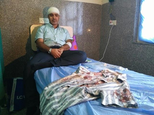 وأضاف الكلابي، "الا اني فوجئت بقيام الشخص المذكور بتسديده لكمة في مقدمة رأسي ادت الى اختلال توازني، واستمر في ضربي عل رقبتي وصدري ورأسي حتى بدأت مخضب بدمي"،