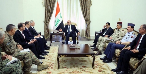 وذكر بيان لمكتب العبادي اليوم ان " العبادي استقبل بمكتبه اليوم الثلاثاء وزير الدفاع الامريكي جيمس ماتس والوفد المرافق له، وجرى خلال اللقاء بحث تعزيز التعاون بين البلدين في المجال العسكري والتدريب والتسليح، اضافة الى الحرب على الارهاب والانتصارات التي تحققها القوات العراقية على عصابات داعش الارهابية" .
