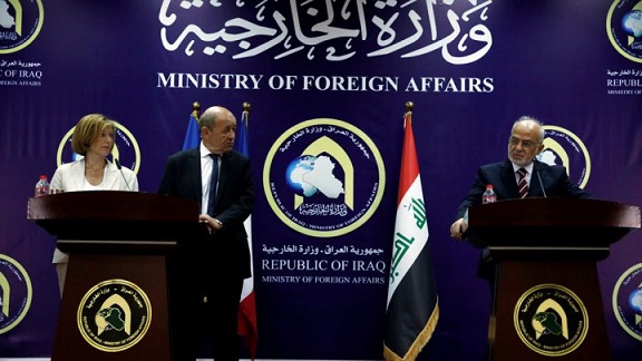 من جانبه، دعا الجعفري الطرف الفرنسي إلى التعاون مع حكومة بغداد في إعادة البناء وإعمار المناطق المحررة من الإرهابيين.