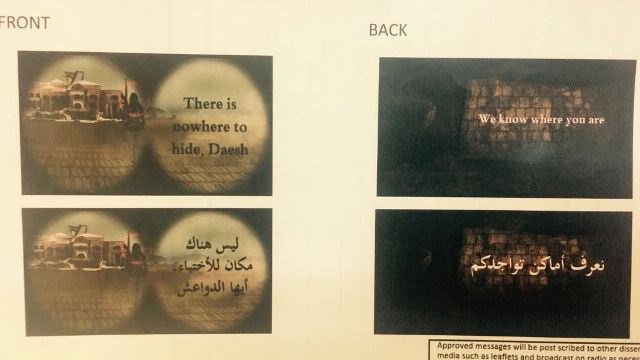 ألقت طائرات القوة الجوية، الجمعة، الآف المنشورات على مناطق الحويجة وساحل الشرقاط الايسر حذرت فيها تنظيم "داعش"الارهابي من ساعة الحساب.