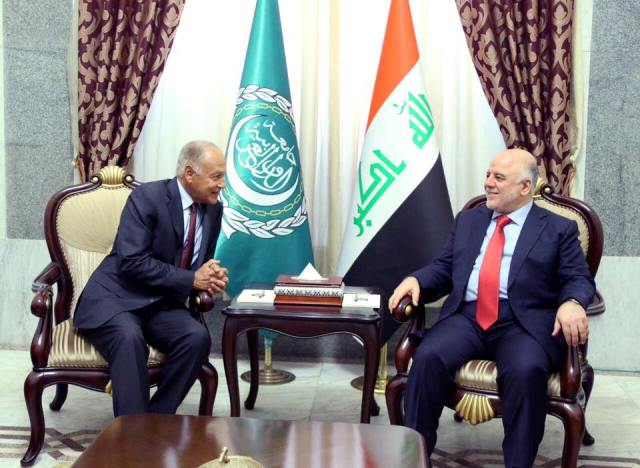 وقال المكتب الاعلامي لرئيس الوزراء في بيان ، إن "العبادي استقبل، اليوم، الامين العام للجامعة العربية احمد ابو الغيط والوفد المرافق له"، مبينا أن "الجانبين بحثا تطورات الاوضاع السياسية والامنية في العراق والمنطقة، ومحاربة الارهاب، والانتصارات المتحققة على عصابات داعش الارهابية".