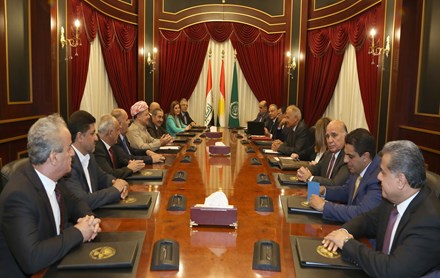 وذكر بيان لرئاسة الاقليم ان رئيس الاقليم مسعود بارزاني استقبل مساء أمس أبو الغيط والوفد المرافق له وأكد الأخير بأن جامعة الدول العربية تنظر بعين الأهمية والإحترام إلى إقليم كردستان، وتمنى أن ينعم الإقليم بالإستقرار الدائم.