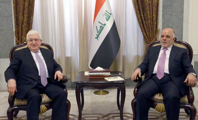 أكد رئيس الوزراء حيدر العبادي خلال استقباله بمكتبه اليوم الخميس رئيس الجمهورية فؤاد معصوم موقفه الثابت من رفض استفتاء اقليم كردستان.