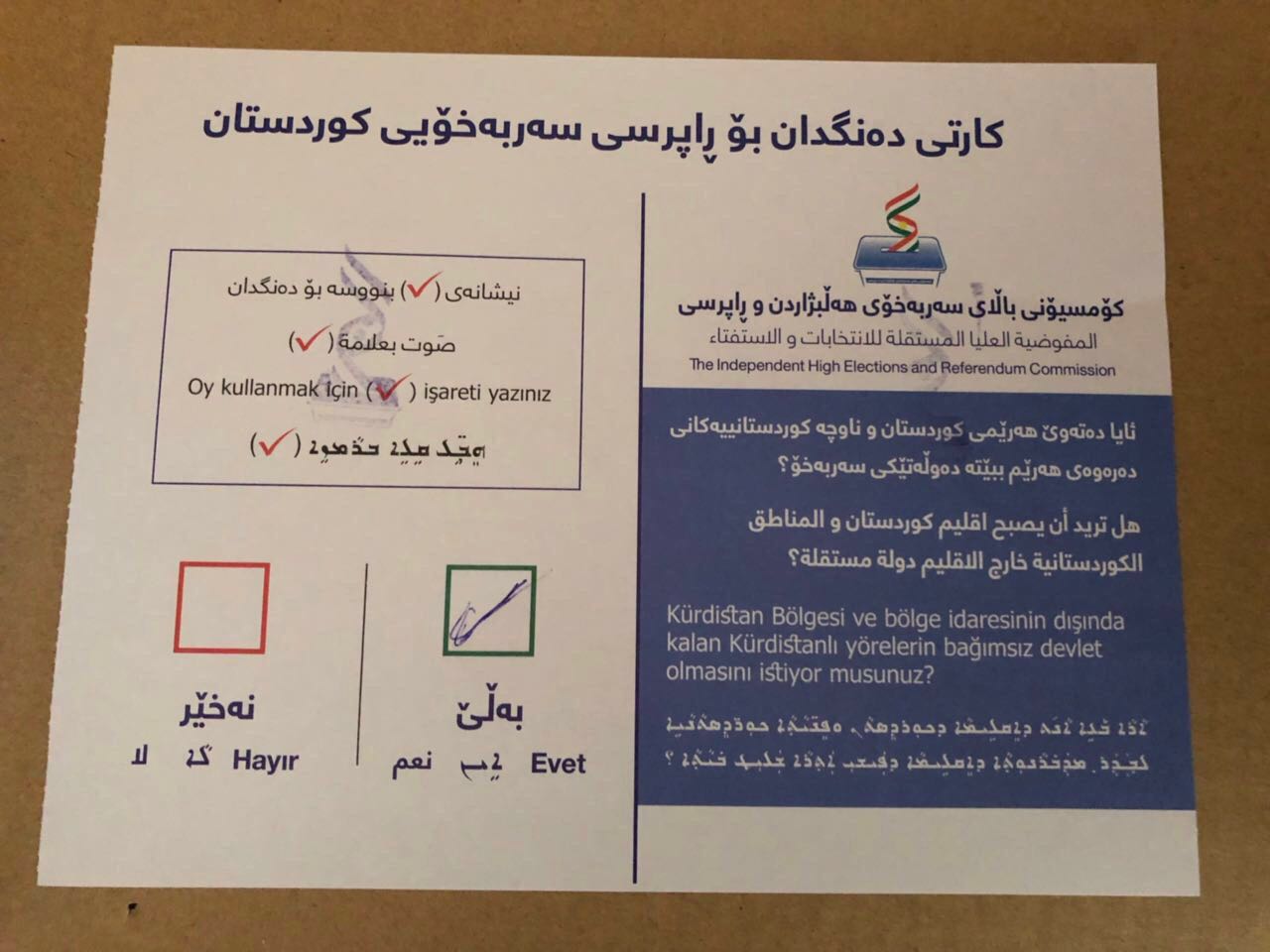 وقالت وزارة الخارجية الأميركية في بيان إن "الولايات المتحدة تشعر بخيبة أمل عميقة بسبب قرار حكومة إقليم كردستان إجراء استفتاء أحادي الجانب على الاستقلال اليوم، بما في ذلك في مناطق خارج إقليم كردستان".