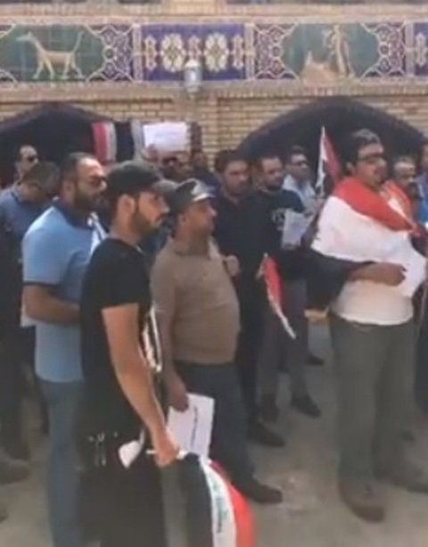 وشددوا "نرفض المحسوبيات والمنسوبيات"، رافعين اعلاما عراقية ويافطات كتب عليها "برة برة ياهيوا "، و"نرفض المحاصصة".