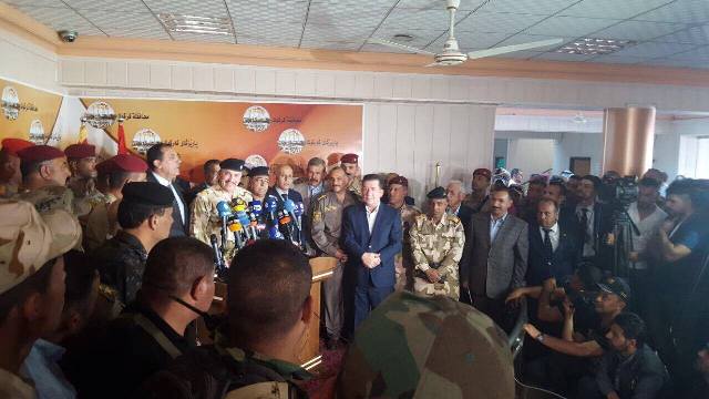 وقال الجبوري في مؤتمر صحفي مع قائد عمليات شرق دجلة علي عمران، إن "المحافظة دعت العوائل النازحة من كركوك الى العودة فورا الى منازلهم بعد ان عادت الحياة طبيعية في دوائر الدولة"، مشيرا الى ان "الملف الأمني بيد شرطة محافظة كركوك حصرا".