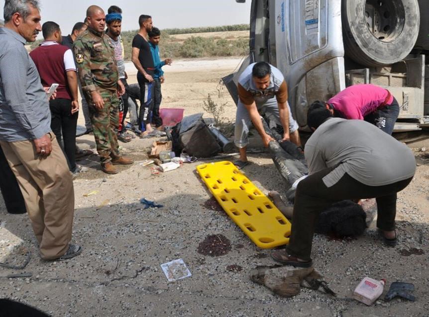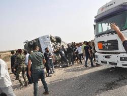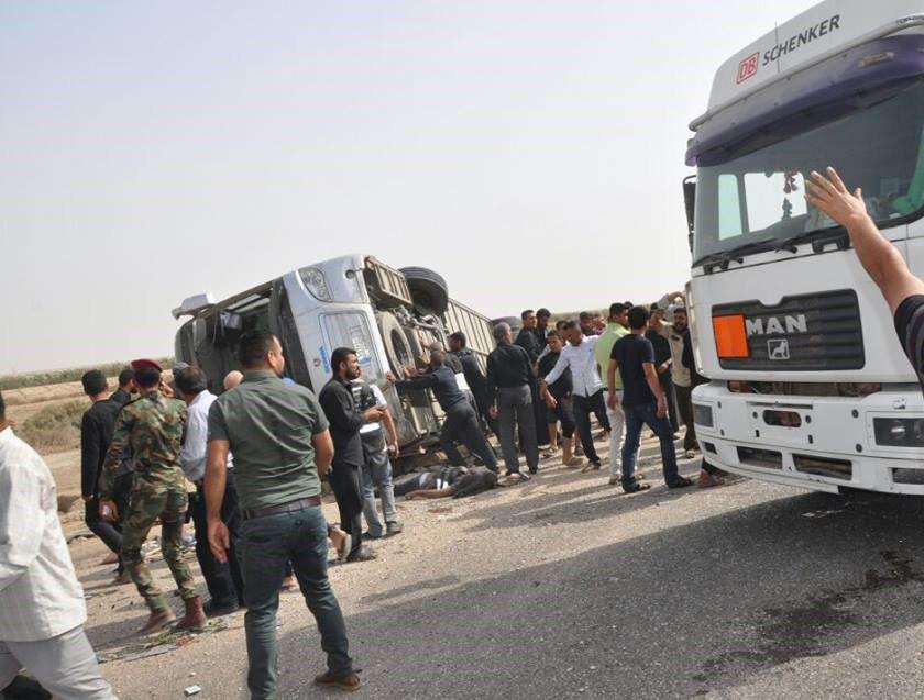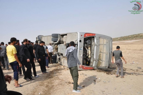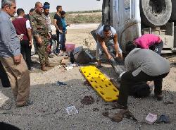 توفي واصيب 15 زائراً كويتياً بانقلاب حافتلهم غرب مدينة الناصرية مركز محافظة ذي قار.