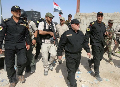 وكان العبادي وصل في وقت سابق من اليوم الأحد، إلى قضاء القائم الذي أعلن عن تحريره من سيطرة تنظيم "داعش" يوم الجمعة الماضي.
