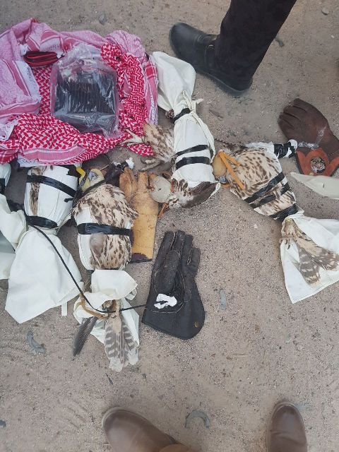 وقالت الهيئة في بيان إنه "تم ضبط مسافر كويتي بحوزته ٥ صقور مخدرة وأجهزة تعقب مختلفة إضافة إلى حيازته جواز سفر عدد ٢وتأشيرة دخول عدد ٢ مزورة ايضا".