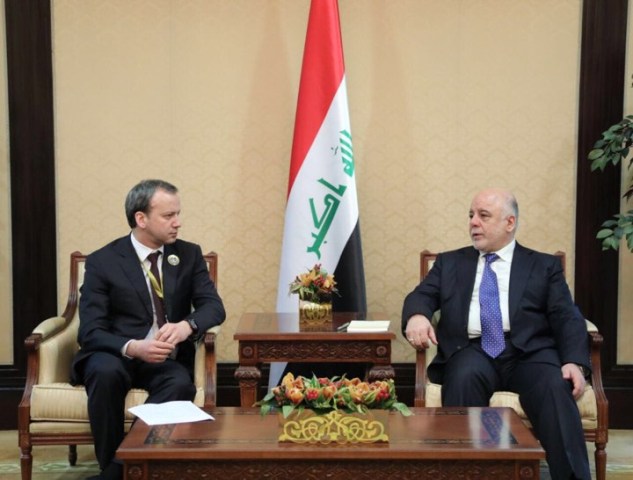 اعلن المكتب الإعلامي لرئيس الوزراء حيدر العبادي، اليوم الاربعاء، أن الاخير بحث مع نائب رئيس الوزراء الروسي اركادي دفوركوفيتش تعزيز التعاون الثنائي بين البلدين ودخول الشركات الروسية للاستثمار في العراق.
