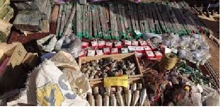 وأضاف البيان ، انه 'عثر بداخله على (100) حزام ناسف معد للتفجير، و(1000) كبسولة تفجير و(1000) سبحة تفجير و(150) لغم vs50'.