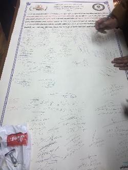 وقعت وزارة الداخلية والعشائر، الاربعاء، وثيقة عهد وشرف بعدم كتابة اي عبارات تهديد على جدران المنازل.