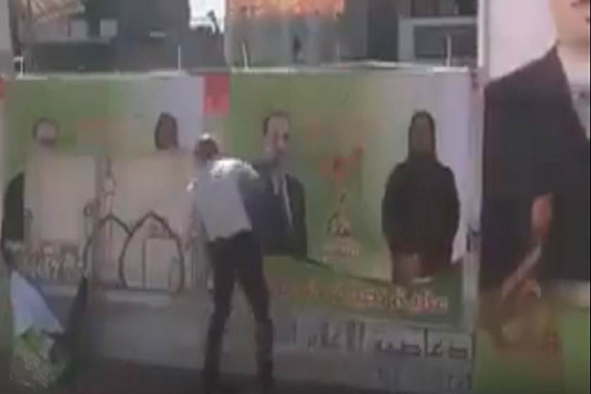 واظهرت صور ومقاطع فيديو قيام مواطنين بتمزيق صور الدعايات الانتخابية لعدد من المرشحين يتقدمهم زعيم ائتلاف دولة القانون نوري المالكي.