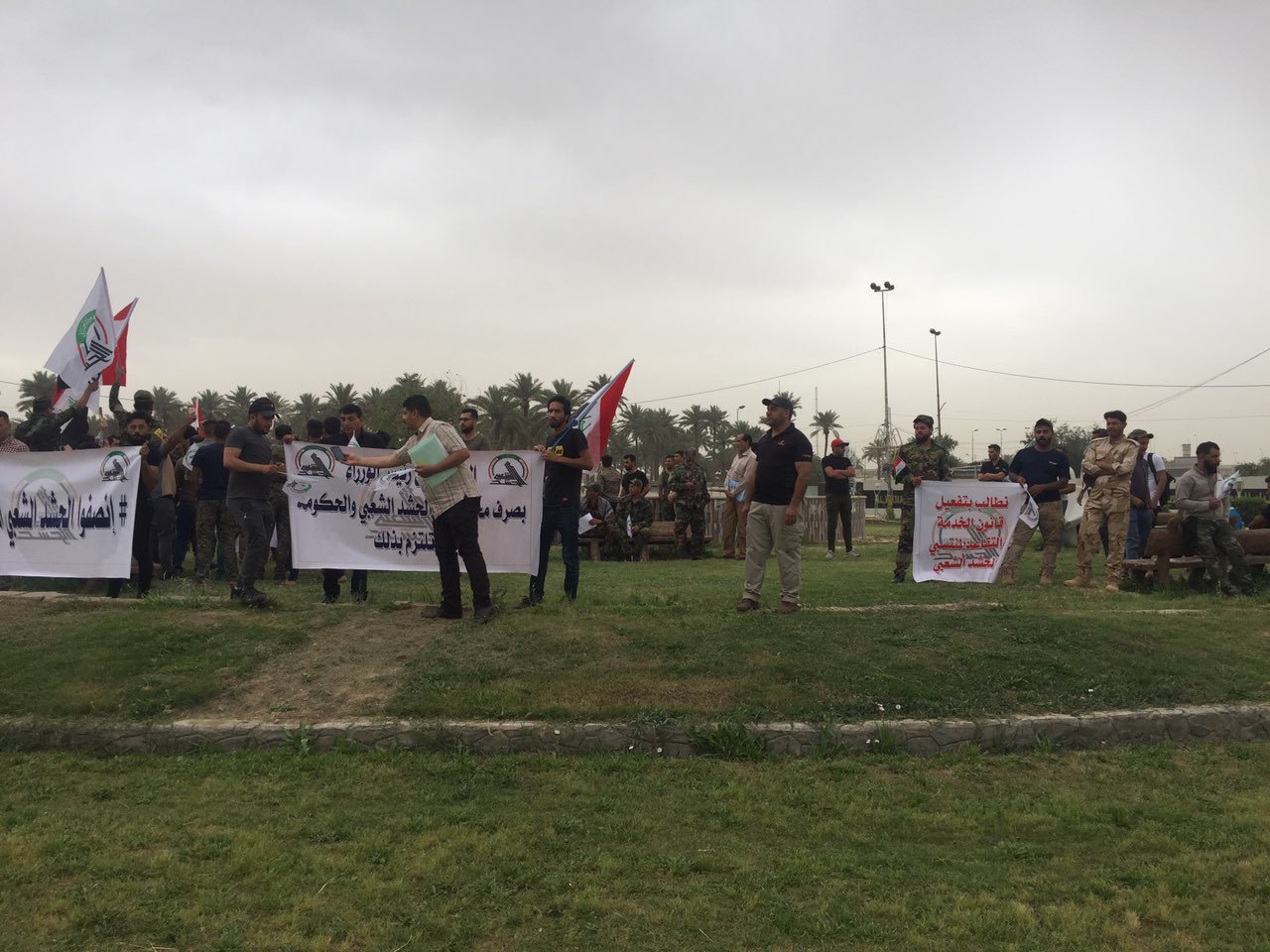 وقال مصدر صحفي ان العشرات من منتسبي الحشد الشعبي وعوائلهم تظاهروا اليوم في ساحة الطابقين امام مدخل المنطقة الخضراء وسط بغداد، للمطالبة بانصافهم.