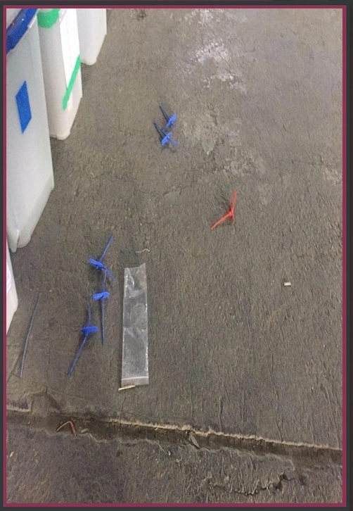وتظهر الصور أقفال الصناديق مرمية على الارض وهي تالفة، كون هذه الاقفال تستخدم لمرة واحدة فقط ولا يمكن فتحها إلا بإتلافها، مما يدلل على فتح تلك الصناديق بهدف إبطالها بسبب عدم تطابق ارقام الأقفال مع أرقام الصناديق، عند اجراء العد والفرز اليدوي.
