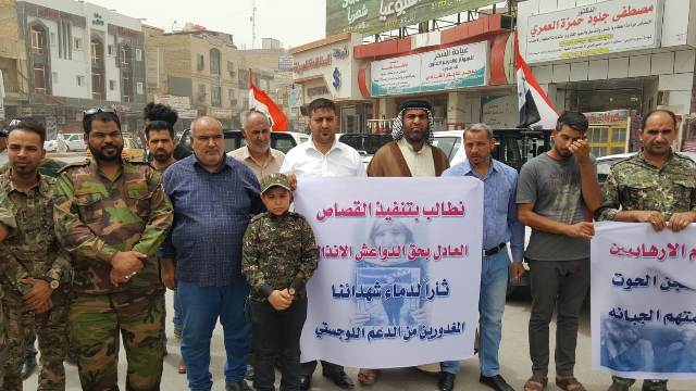 تظاهر العشرات من عناصر الدعم اللوجستي للحشد الشعبي وهيئة المواكب، الخميس، وسط محافظة ذي قار للمطالبة بتنفيذ حكم الإعدام بحق الإرهابيين الصادرة بحقهم أحكام إعدام.