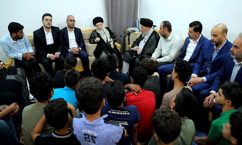استقبل المرجع الديني المفدى السيد محمد سعيد الحكيم في مكتبه بالنجف الاشرف، وفداً من أبناء شهداء الحشد الشعبي المشاركين في المخيم الكشفي الذي تقيمه العتبة العباسية المقدسة في كربلاء المقدسة لأبناء شهداء الحشد الشعبي في محافظتي المثنى وكربلاء.
