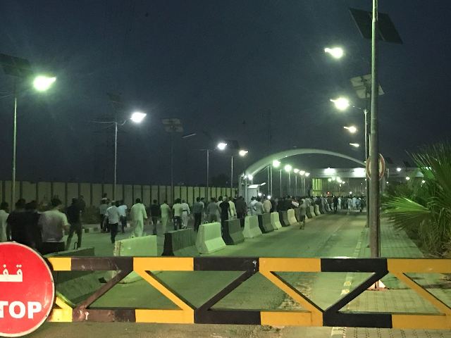 فيما قال الزميل السيد احمد مهدي الياسري ان المتظاهرين اقتحموا نقاط التفتيش الاولى والثانية واقتحمو المطار بشكل كامل والان داخل الصالات ومدارج الطائرات