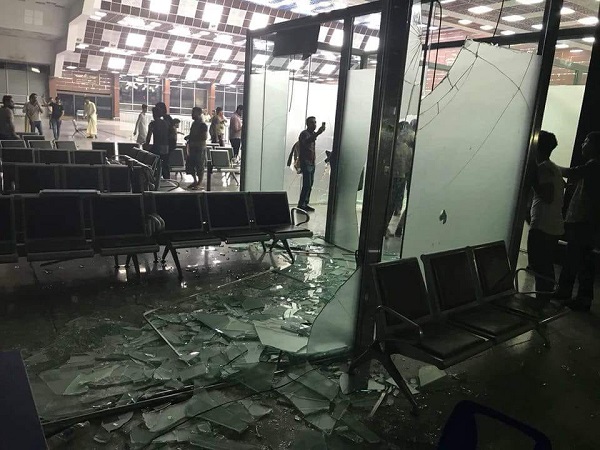 وتداول ناشطون على مواقع التواصل الاجتماعي عددا من الصور التي تبين اقتحام مطار النجف من قبل متظاهرين ينتمون الى جهة سياسية معروفة كما توضح انتشارهم في اغلب مرافق المطار بما فيها المدرج.