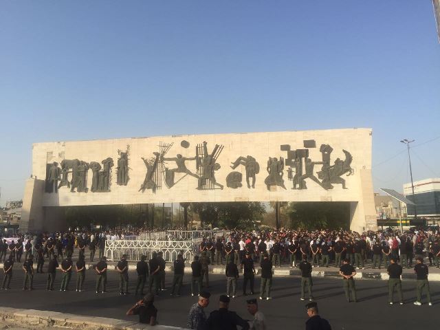 وقال مصدر صحفي إن العشرات من المواطنين تظاهروا اليوم في ساحة التحرير بمنطقة الباب الشرقي وسط بغداد.