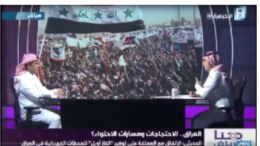 هاجم مقدم احد البرامج السياسية على قناة الاخبارية السعودية الرسمية تدخل مرجعية الامام المفدى السيد علي السيستاني في الاحداث الجارية في العراق قائلا " الاستعانة بالمرجعية من قبل الشعب سيجر الى مالايحمد عقباه والعودة الى الصراعات الطائفية واضاف كان المفروض ان يوجه الشعب مطالبه للحكومة مباشرة دون المرور بالمرجعية " .