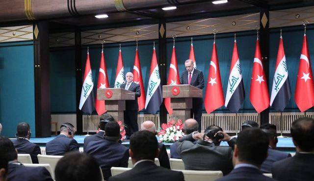 وقال اردوغان في مؤتمر صحفي مشترك مع العبادي في انقرة إن "تركيا تعمل على الاستجابة لمطالب العراق، ونحن جاهزون لدعمه وبنائه"، لافتا الى ان "اصعب المراحل التي مر بها العراق، تأكد فيها العراقيون ان تركيا تقف الى جانبهم".