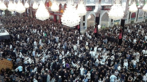 وقال السيد افضل الشامي معاون الامين العام للشؤون الفكرية والثقافية في كلمة القاها نيابة عن الشيخ عبد المهدي الكربلائي بمناسبة تبديل رايتي الامامين الحسين واخيه العباس {عليهما السلام} ايذاناً ببدء شهر محرم الحرام،" نجدد معاني الحزن والاسى بقدوم شهر محرم الحرام وعطش الامام الحسين {عليه السلام} ونحره من القفى بسيوف بني معاوية لعنة الله عليهم ونتذكر السيدة زينب عليها السلام ومحنتها في هذه الأيام".