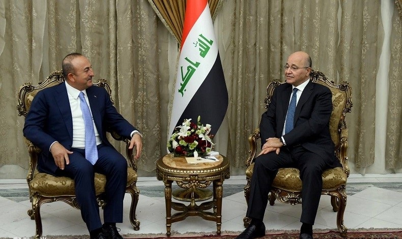 وذكر المكتب الإعلامي لرئيس الجمهورية، في بيان ، ان "برهم صالح استقبل اليوم في قصر السلام ببغداد، وزير الخارجية التركي مولود تشاووش أوغلو، والوفد المرافق له"، مبينا ان "وزير الخارجية التركي قدم تهاني وتحيات رئيس بلاده أردوغان، ورئيس الوزراء بن علي يلدرم إلى برهم صالح بمناسبة توليه الرئاسة".