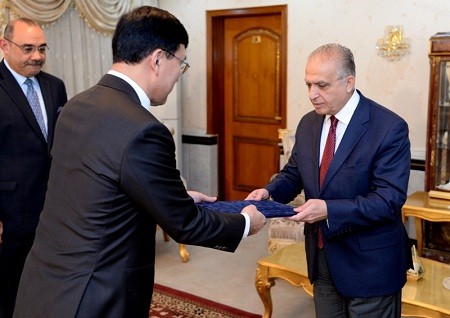 تسلم وزير الخارجية محمد علي الحكيم ،الخميس، نسخة من أوراق اعتماد يانك يونك ووك سفيراً فوق العادة لكوريا الجنوبية لدى بغداد.