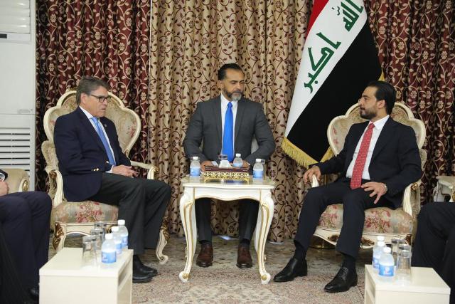 وقال مكتب الحلبوسي في بيان إن "رئيس مجلس النواب استقبل اليوم وزير الطاقة الأمريكي ريك بيري والوفد المرافق له، وجرى خلال اللقاء بحث العلاقات بين البلدين على المستوى الاقتصادي، وجهود تفعيل الاتفاقيات الاستراتيجية".