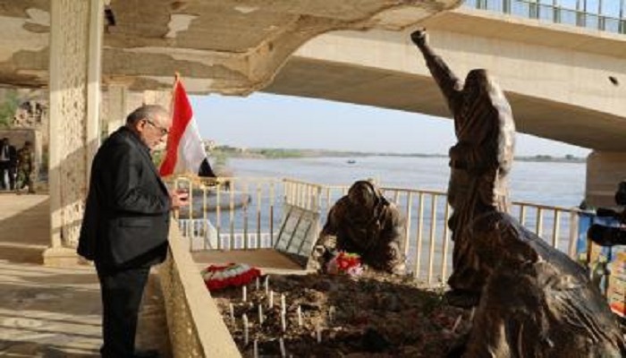 وقال، بقلوب حزينة ولكن برؤوس مرفوعة نقف اليوم في المكان الذي ارتكبت فيه هذه الجريمة البشعة على يد عصابة داعش الارهابية التي اقدمت على قتل شباب عزّل من السلاح .