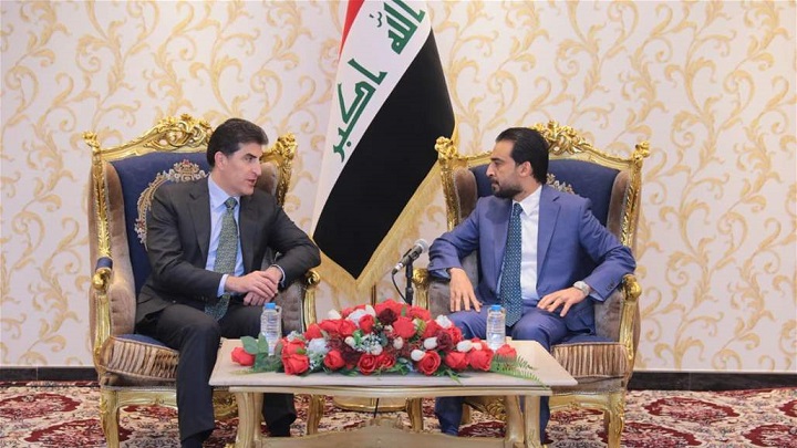 وقال مكتب رئيس البرلمان محمد الحلبوسي في بيان إن "رئيس مجلس النواب استقبل اليوم رئيس اقليم كردستان نيچيرفان بارزاني والوفد المرافق له، وناقش خلال الإجتماع الإلتزامات المالية على الإقليم فيما يتعلقُ منها ببيع النفط حسب ماجاء بقانون الموازنة الاتحادية العامة لسنة 2019 وضرورة الحرص على تطوير العلاقات بين الإقليم والحكومة الإتحادية وحل جميع المشاكل العالقة بينهما بروح الأخوة والشراكة الوطنية" .