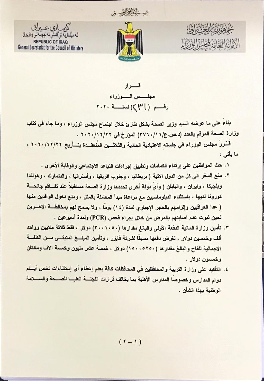 وجاء هذا الاجراء كاجراء احترازي لمنع انتشار وباء كورونا بعد تفشي السلالة الجديدة للفايروس في عدد من الدول.