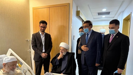 زار رئيس المجلس الأعلى الإسلامي الشيخ همام حمودي، اليوم الخميس، المرجع الديني الشيخ محمد إسحاق الفياض في مستشفى ببغداد للاطمئنان على صحته.