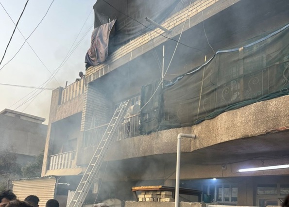 وقال المصدر إن "فرق الدفاع المدني توجهت إلى حادث حريق متوسط اندلع داخل عدد من الشقق السكنية ضمن شارع الخيمة في شارع فلسطين".