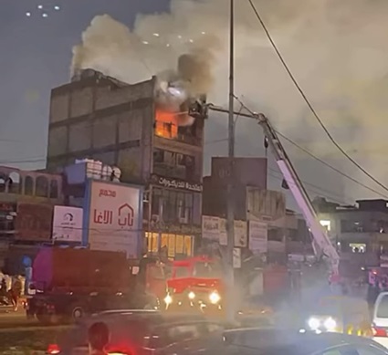 وقال المصدر إن "حريقا اندلع في بناية المتحدة للكهربائيات الواقعة بالقرب من تقاطع بانزين خانة شارع الداخل، في مدينة الصدر".