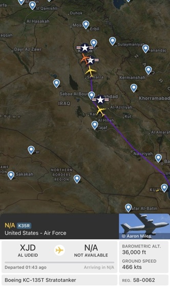 ووفقًا لمواقع رصد الطائرات، فقد تم رصد هذه الطائرات أثناء عبورها الأجواء العراقية متجهة نحو إقليم كردستان وتركيا .