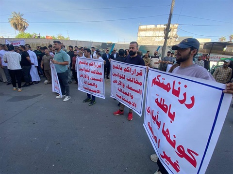 تظاهر العشرات من التجار، اليوم الأحد، أمام وزارة الزراعة في بغداد احتجاجا على قرار منع استيراد الدجاج وبيض المائدة.