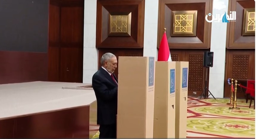 فقد رئيس البرلمان محمود المشهداني توازنه أثناء الإدلاء بصوته.