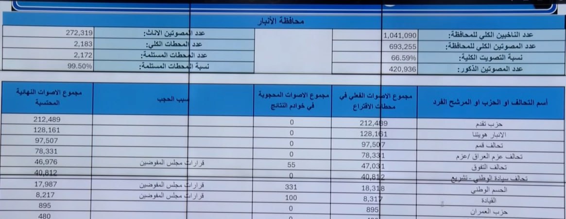 مفوضية الانتخابات: حزب تقدم أولاً والأنبار هويتنا ثانياً وتحالف قمم ثالثاً في الأنبار