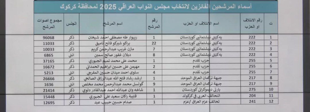 اسماء الفائزين في الانتخابات البرلمانية يمحافظة كركوك