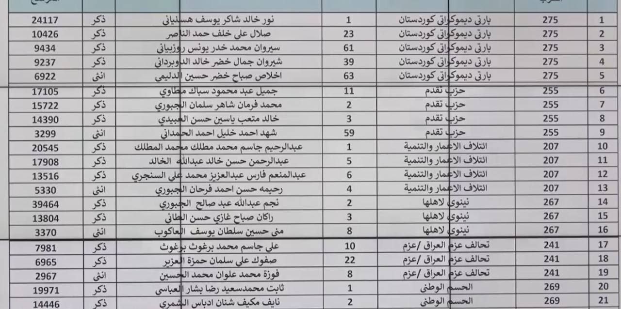 اسماء الفائزين في الانتخابات البرلمانية يمحافظة نينوى