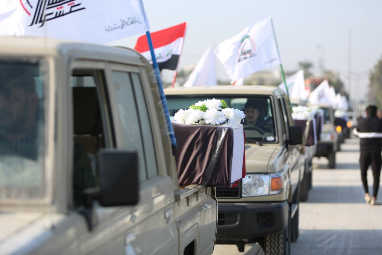 احتضنت العاصمة بغداد، صباح اليوم الجمعة، مسيرة التشييع الرمزي لاستذكار شهداء من الحشد الشعبي والذين ارتقوا في قضاء القائم غربي محافظة الأنبار، جرّاء قصف أمريكي العام 2019، حيث ذكرت الوكالة الرسمية، أن "المسيرة شهدت مشاركة جميع تشكيلات هيئة الحشد الشعبي والقيادات الأمنية والرموز الدينية، إلى جانب جمع غفير من النخب المجتمعية"، لافتاً الى أن "المسيرة تضمنت حمل النعوش الرمزية على متن المركبات، حيث تم الانطلاق من موقع نصب الشهيد، وصولًا إلى ساحة التحرير".