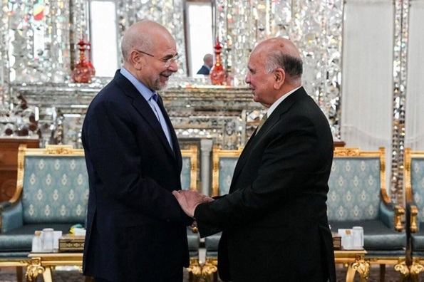 بحث رئيس البرلمان الإيراني محمد باقر قاليباف مع وزير الخارجية العراقي فؤاد حسين، اليوم الأحد ( 18 كانون الثاني 2026 )، آخر المستجدات الإقليمية وسبل تعزيز العلاقات الثنائية بين البلدين، وذلك خلال لقاء جمعهما على هامش مشاورات سياسية بين الجانبين.