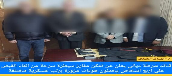 القت قوة امنية من شرطة ديالى القبض على أربعة اشخاص ينتحلون صفة عسكرية عند حاجز امني شمال بعقوبة مركز محافظة ديالى .